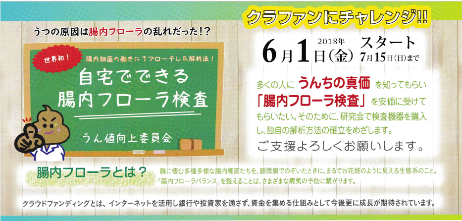 6月1日(金)から腸内フローラのクラウドファンディングがスタートされます。